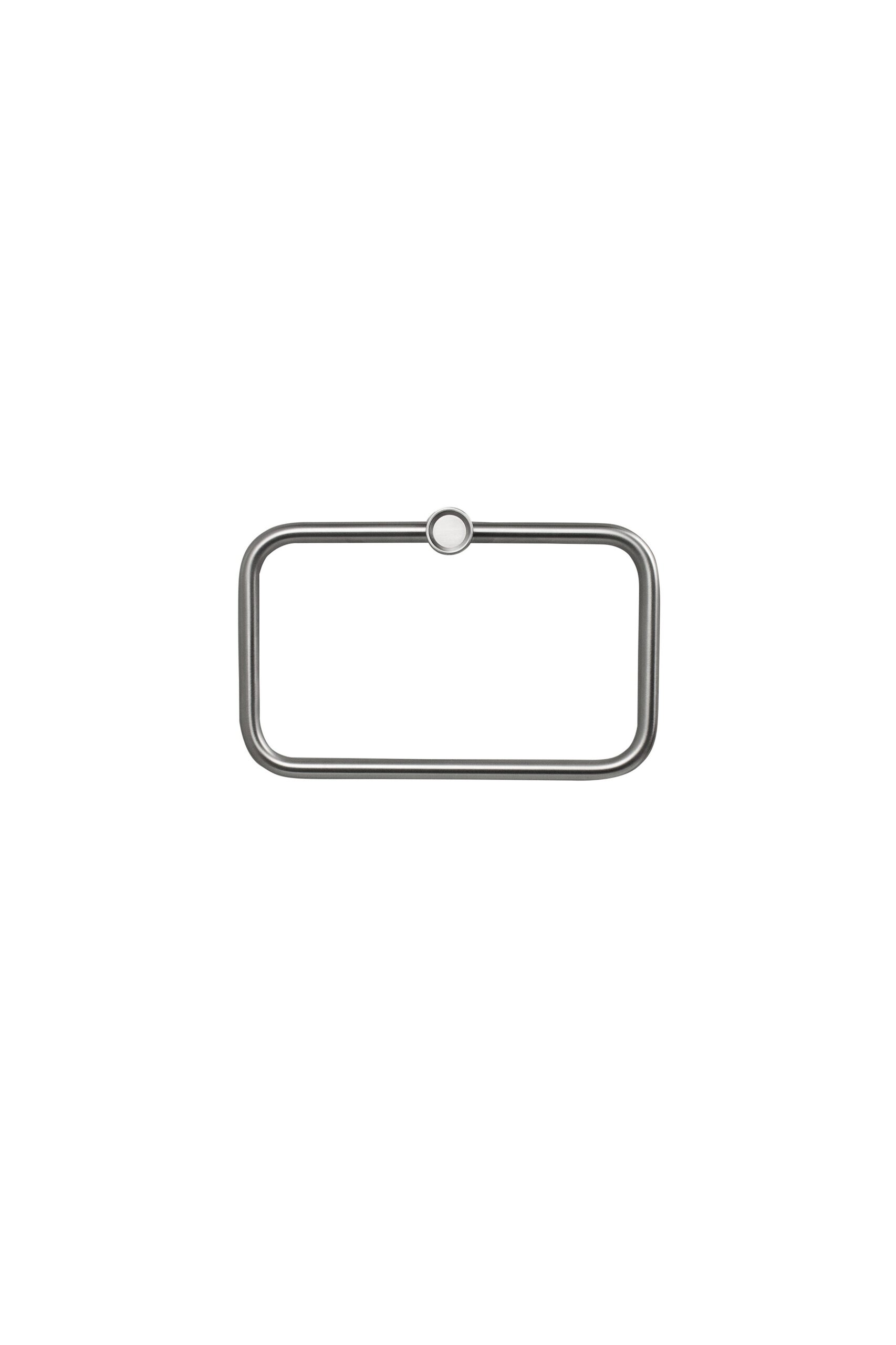 Ring-shaped towel rail in 316L stainless steel.