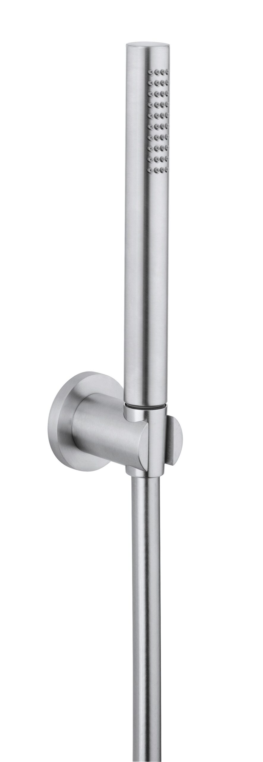 Shower set in 316L stainless steel, with anti-limescale hand shower equipped with 160 cm long flexible hose, shower holder and 52 mm diameter rosette.