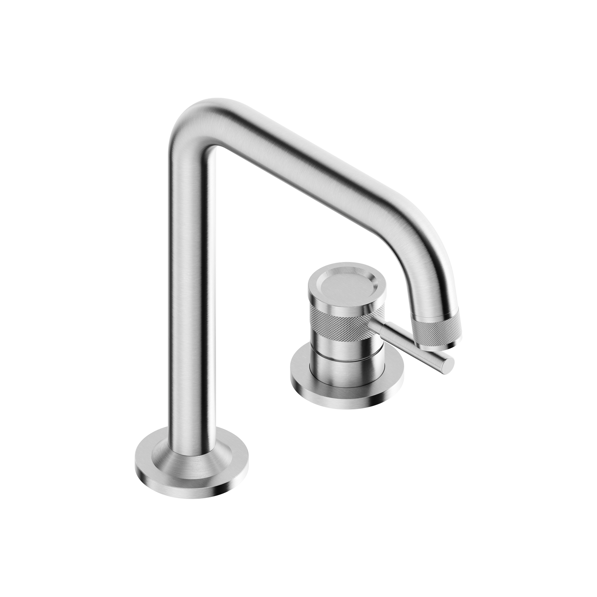 Miscelatore per lavabo 2 fori in acciaio inox 316L senza scarico, con bocca alta, aeratore anticalcare M18, 5×1 e flessibili di collegamento G3/8” inclusi
