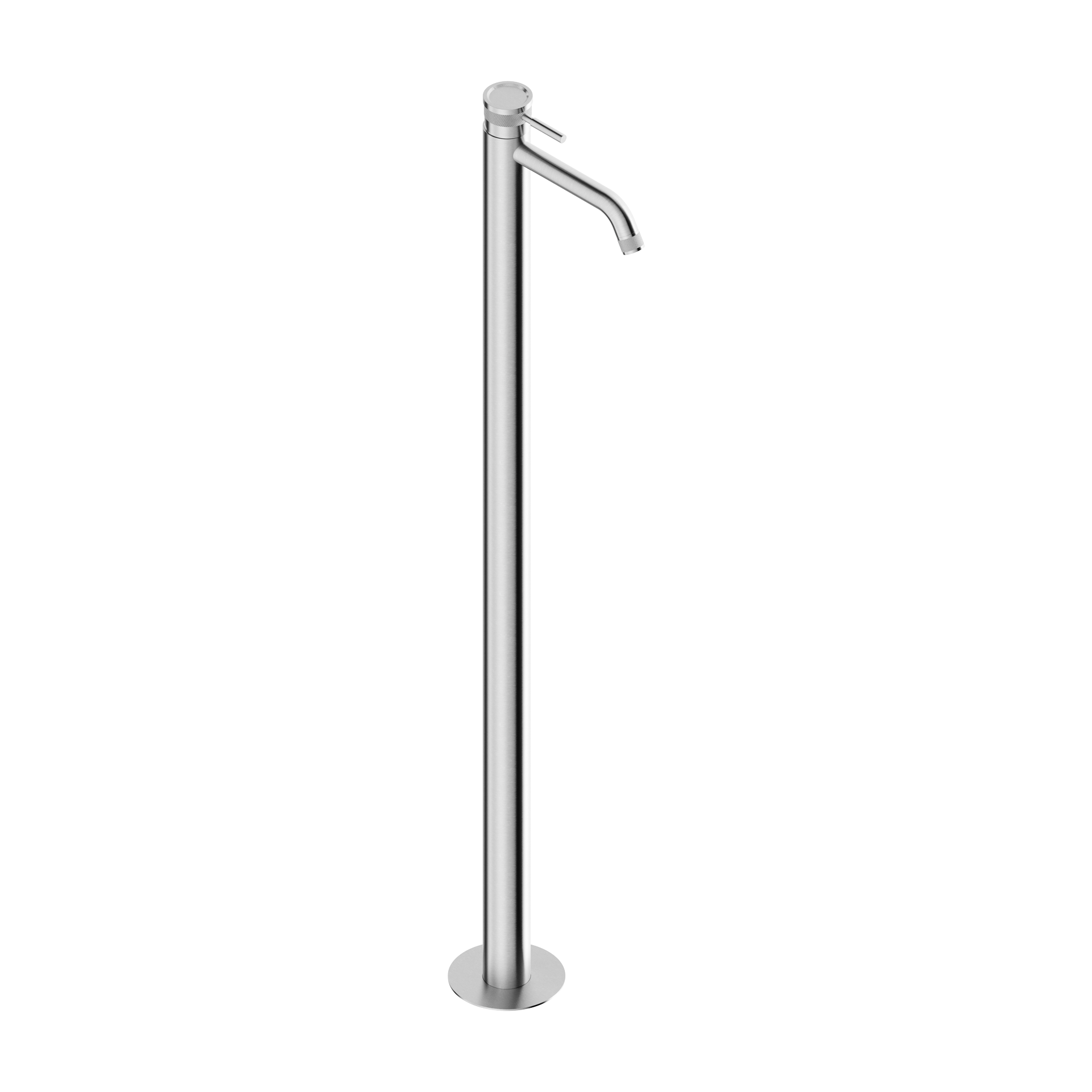 Miscelatore per lavabo a pavimento in acciaio inox 316L con bocca lunga 17 cm, aeratore anticalcare M18, 5×1 e connessione G12”.