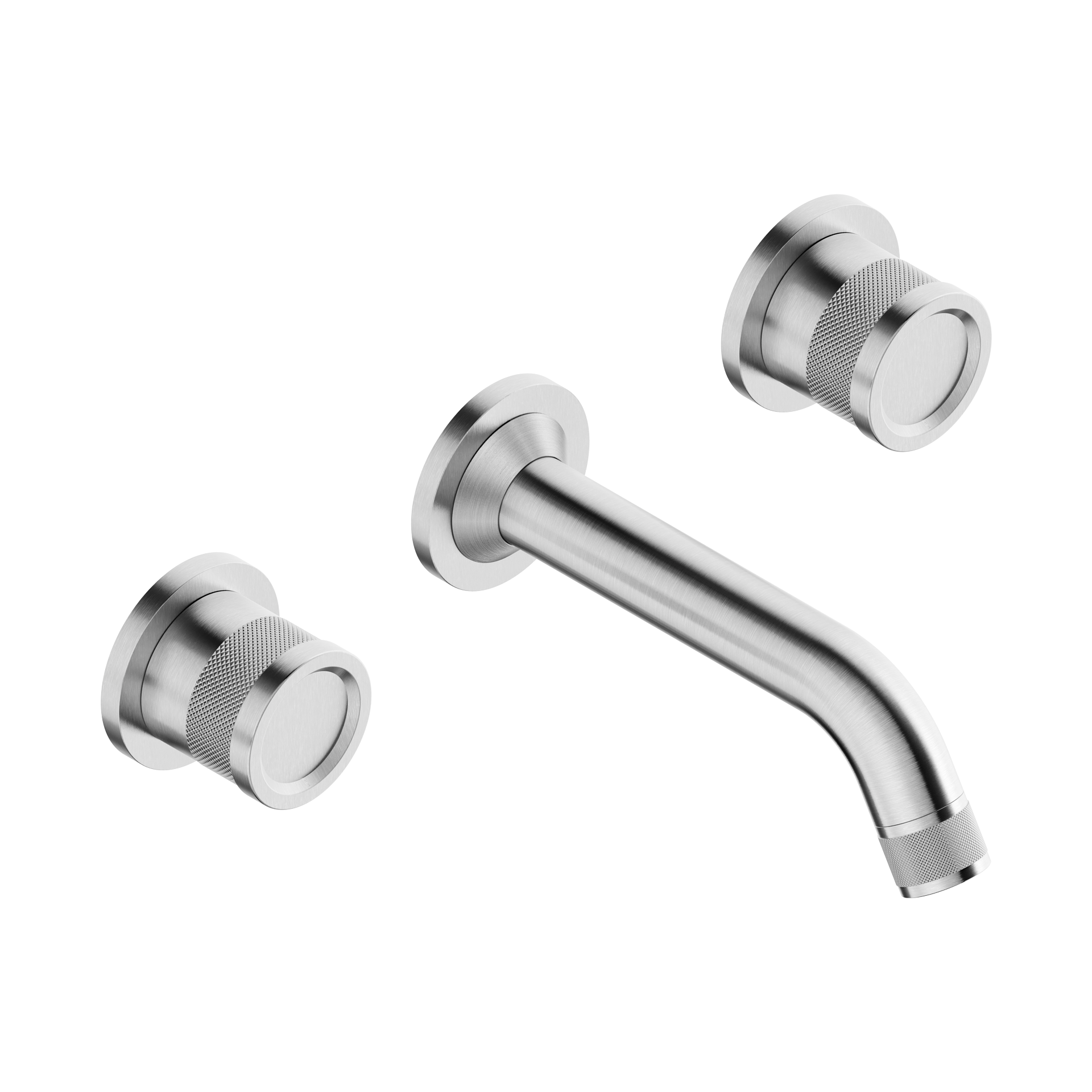 Miscelatore per lavabo ad incasso 3 fori in acciaio inox 316L, con bocca lunga 16 cm, aeratore anticalcare M18, 5×1 e vitone ceramico 1/4 giro e connessione G1/2”