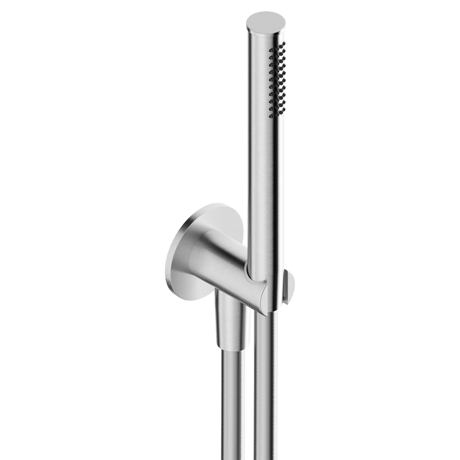 Set doccia in acciaio inox 316L, con doccetta anticalcare flessibile lunga 150 cm, presa d’acqua con supporto doccia.
